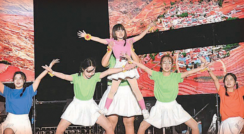 台上,由村民在传统舞蹈的基础上改编的歌舞节目,通过优美的舞步和悠扬的山歌生动展现了近年来老村村的发展变化和村民对未来生活的憧憬期盼。台下,村民们在村党委的组织下欢聚一堂共享年夜饭,在热闹的烟火气中迎接龙年,共同绘就出一幅乡风文明的和美画卷。