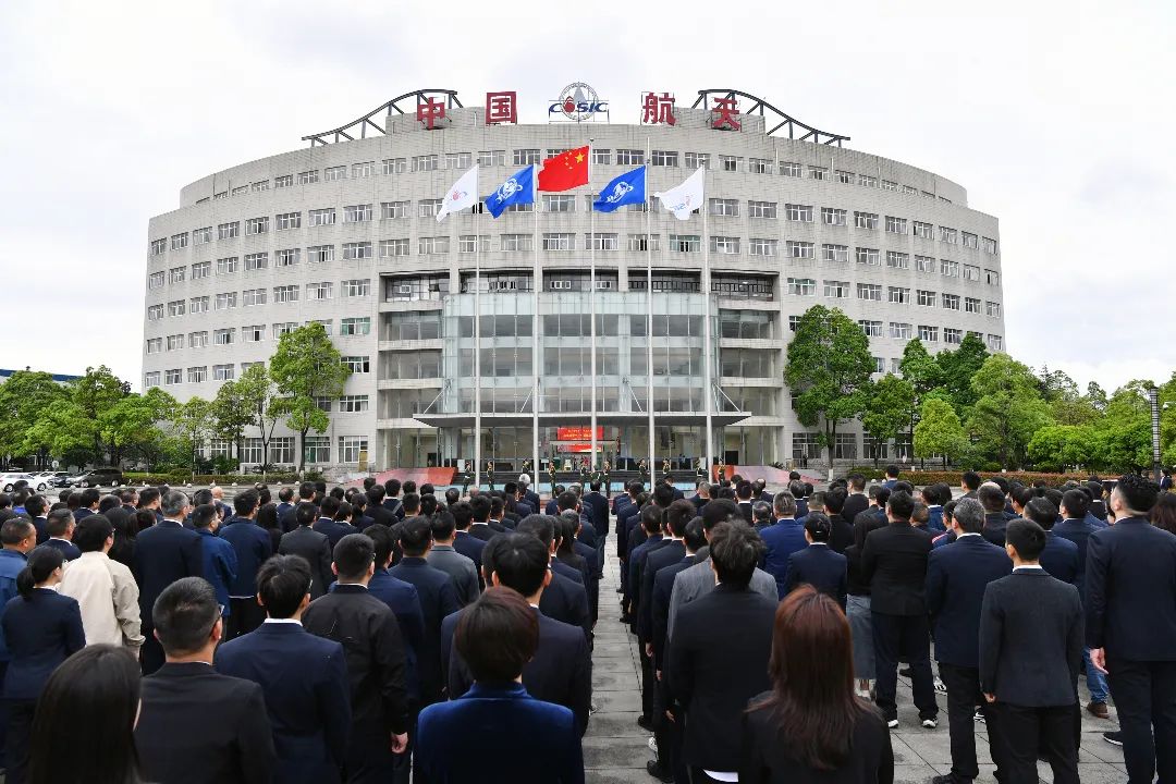 4月24日上午,中国航天科工集团有限公司举行升旗仪式,隆重庆祝第十个“中国航天日”。集团公司在家党组领导,总部各部门(机构)负责人及职工代表参加升旗仪式。