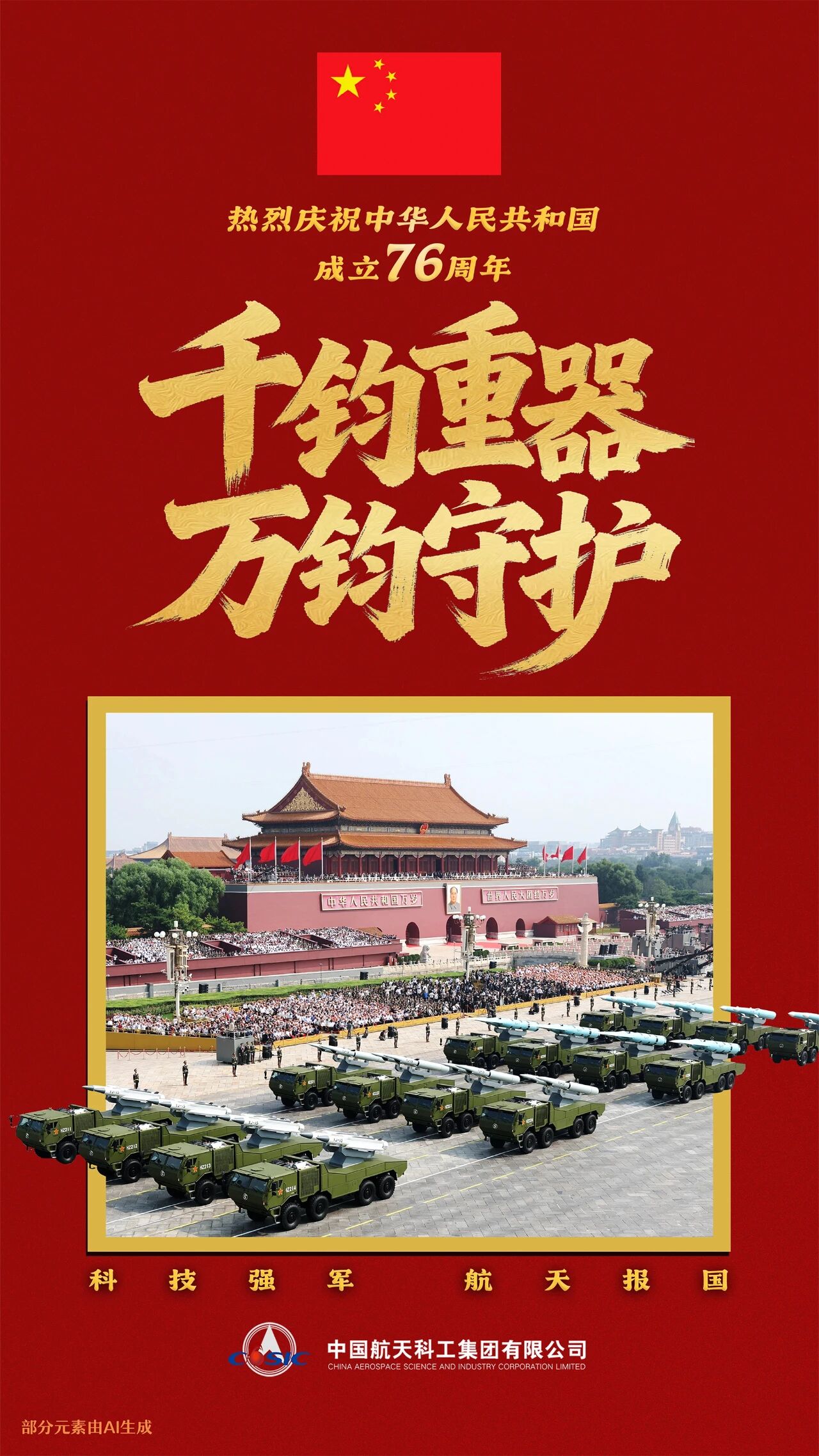 今天,中国航天人祝福伟大祖国繁荣昌盛,祝福伟大人民幸福安康。听党指挥,为国铸剑,千钧重器,万钧守护。(海报/张彤 文案/韩超)