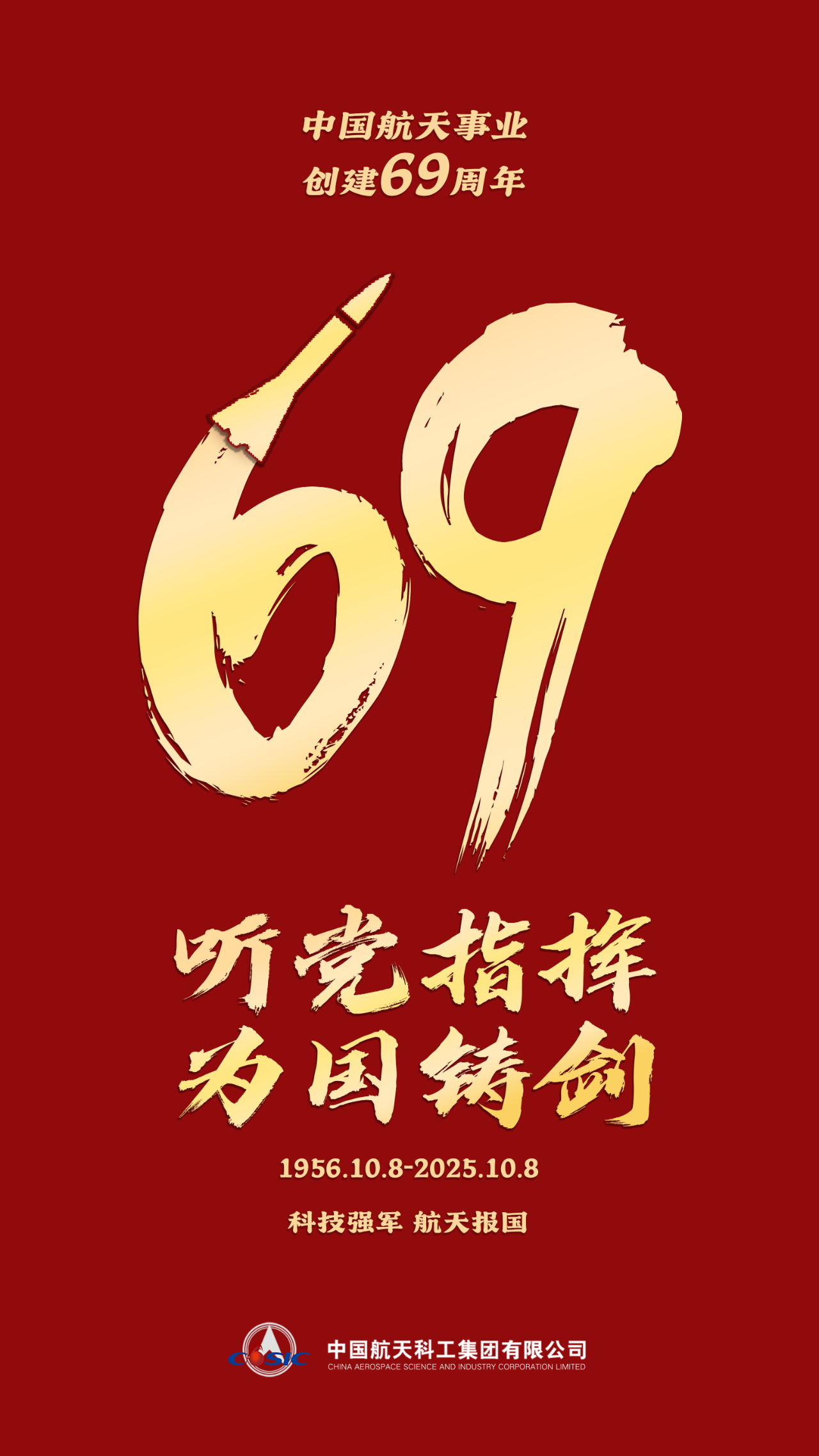 今天是10月8日,中国航天事业创建69周年。