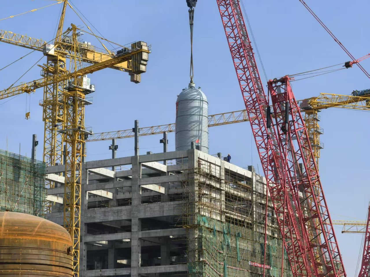 航天晨光化工机械分公司项目团队历时四个半月,在戈壁大漠的极端环境与多重挑战下,按时按质完成两台粉煤给料罐研制交付任务,现正式进入安装吊装环节,为助力西部产业发展贡献航天晨光力量。
