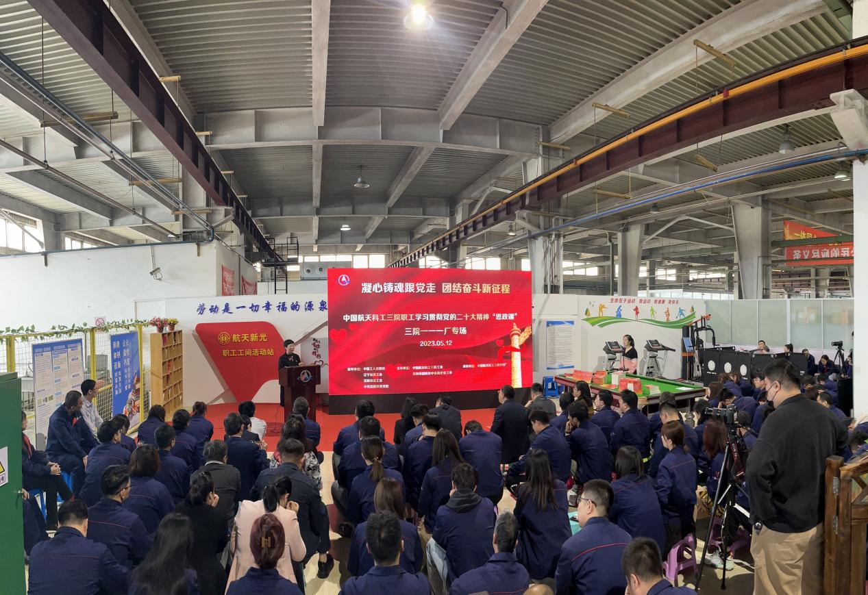 三院工会坚决履行团结引导职工群众听党话、跟党走的政治责任,各级工会组织通过干部培训班、专题学习等形式线上线下学习党的二十大精神、中国工会十八大精神。在“飞航e家”上线中国工会十八大新闻中心,千余名职工连续10天打卡学习相关知识并完成答题活动。三院工会创新开设“思政课”,由24位劳模工匠、先进典型组成的宣讲团走进8家单位的班组车间、生产一线,用“身边故事”讲活“火热实践”。