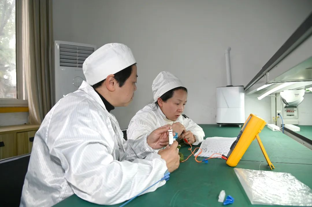 大年初三开始,为保任务节点、提前做好生产准备,险峰公司部分职工走上岗位,开启工作模式。图为设计师小范和小程在抓紧完善产品设计方案。(图文/张玉莲)