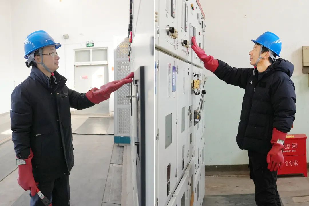为确保企业水电气使用安全,春节期间,万峰公司电气维修技术员胡文凯和特种设备管理员赵海明,每天上午都会到现场检查水电气的使用情况,对设备进行例行保养,为公司用电用水用气安全上好“双保险”。图为两人在查看配电室用电显示。(图文/刘双群)