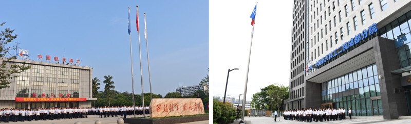 伴随着雄壮的国歌,鲜艳的五星红旗冉冉升起,随着激昂的航天科工之歌,集团公司司旗飘扬空中。全场干部职工庄严肃立,行注目礼。