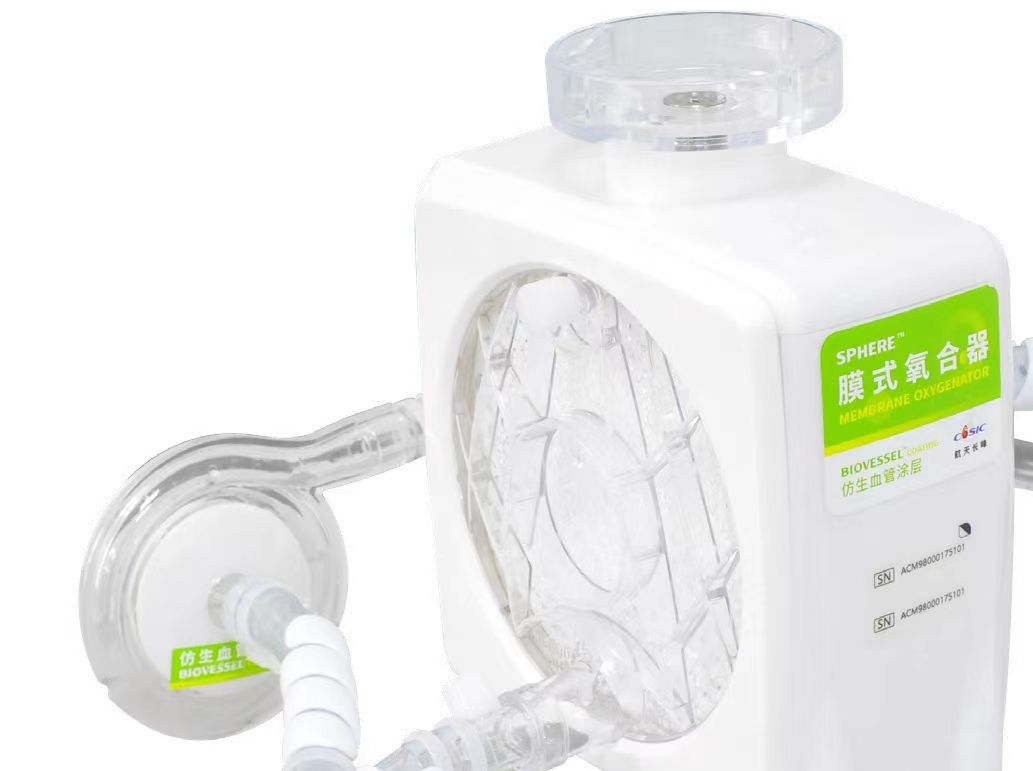 在膜肺材料的创新研发上,航天长峰更加注重材料生物相容性、耐腐蚀性和强度韧性,自研形成SPHERE™圆形流道技术、水汽凝结控制技术、BIOVESSEL™仿生涂层技术等多项核心关键技术,使气血交换过程中,血液不受损、不凝栓,更安全。