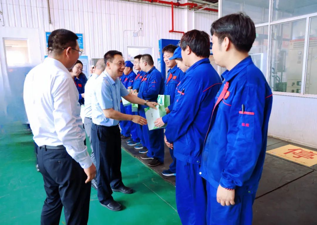 “你们现在每班工作多长时间?”“每天排班几次?几班倒?”“休息室里有没有空调?”在车间里,院领导与大家深入交谈,详细询问了当前生产作业的情况,代表院党委向奋战高温的劳动者致以诚挚的敬意和深切的问候,嘱咐大家一定要做好高温天气下的防暑降温和劳动保护工作,科学调度、劳逸结合、注意身体。施毅要求各单位要严格落实安全生产和防暑降温措施,不断改善职工工作环境、工作条件,开展好“送清凉”慰问工作,切实保障好职工的安全和身心健康,确保广大职工平安度夏,更好推动全年科研生产各项任务完成。