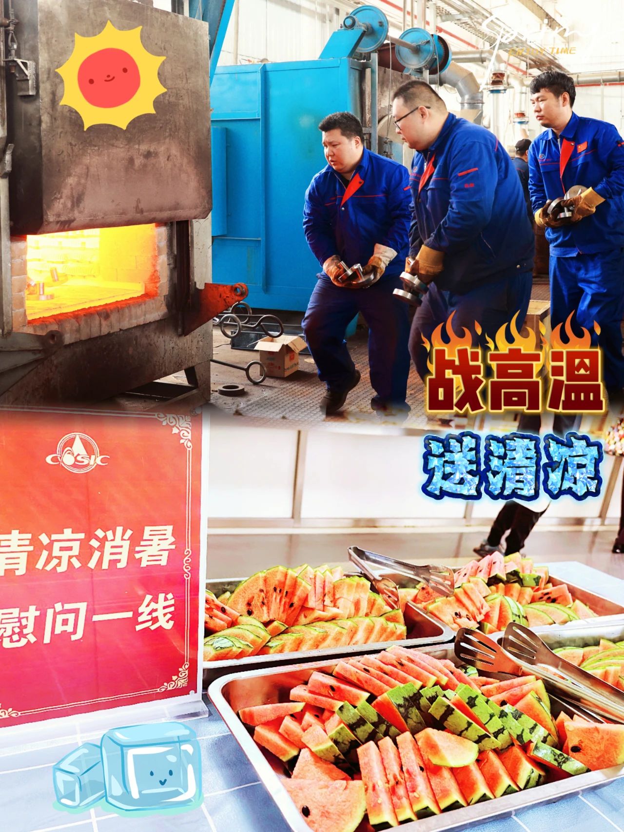 高温下作业的科研生产一线干部职工始终牵动着各级党组织的心。7月23日,中国航天科工三院领导同院本部相关部门走进159厂热处理厂房、物资部下料车间,来到生产车间、操作台前、职工中间,将解暑饮品送到高温作业现场,把清凉送到一线,也带去院党委的关心关怀。