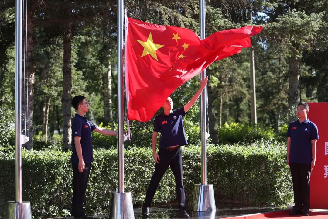 上午8时整,升旗仪式正式开始。红领巾护旗手将遨游过太空的国旗交于六院科研工作者进行展示。伴随着雄壮的《义勇军进行曲》,这面意义特殊的五星红旗冉冉升起,全体人员面向国旗庄严肃立,齐唱中华人民共和国国歌,表达浓浓的爱国之情。