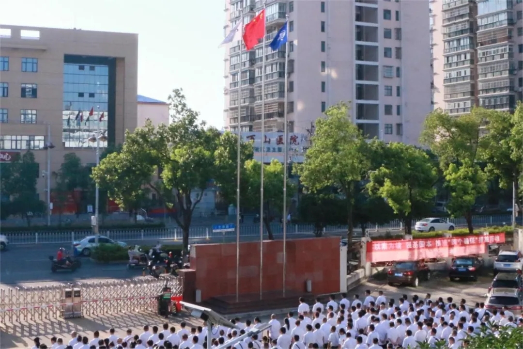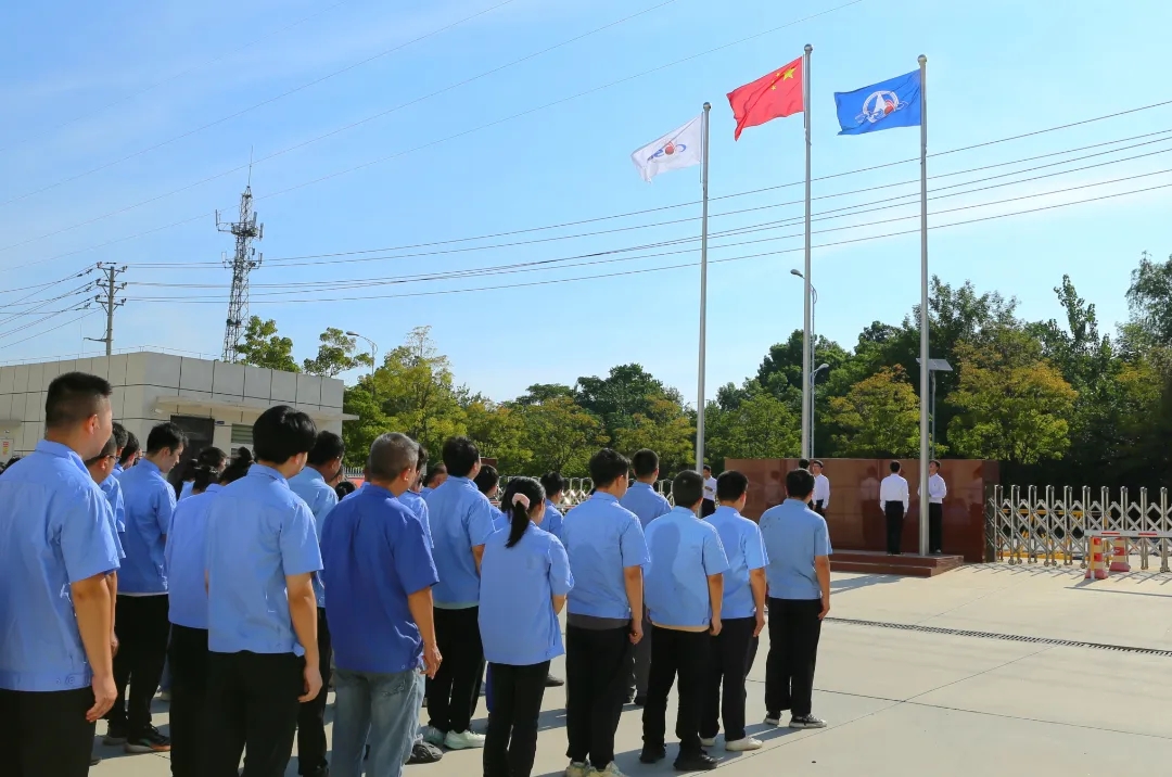 在雄壮的国歌声中,鲜艳的五星红旗冉冉升起。在激昂的集团公司司歌声中,司旗迎风飘扬。