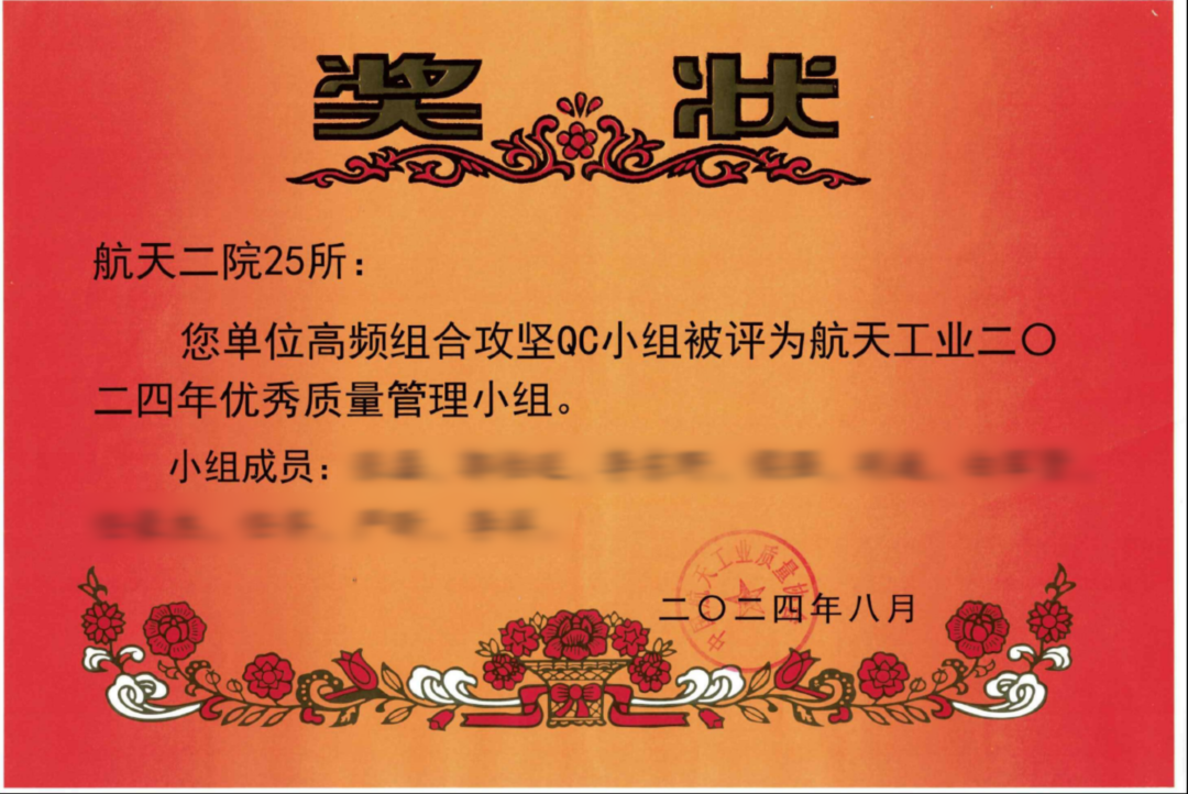近日,航天二院25所四室逐梦QC小组、装调部高频组合攻坚QC小组获评“航天工业优秀质量管理小组”荣誉称号。
