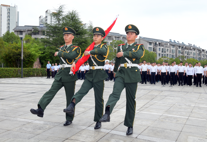 上午8时,伴随着雄壮激昂的国歌以及航天科工之歌,五星红旗和集团公司司旗先后冉冉升起。办公楼前排成整齐队伍的干部职工精神饱满,肃然而立,面对国旗行注目礼。