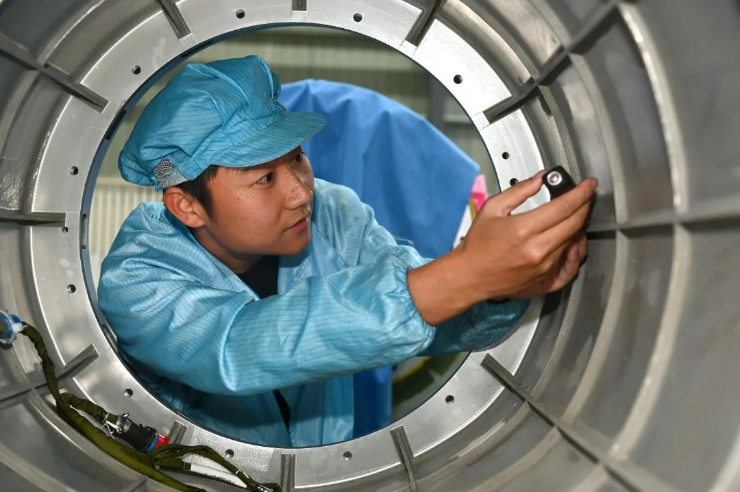 近日,红林公司一重点产品进入交付阶段。一场保质量、保交付的攻坚战在总装总调车间迅速开展。职工们以“严慎细实”的工作态度,严把产品质量关,确保任务圆满完成。图为车间职工正在装配产品。(图文/尹旋坤)