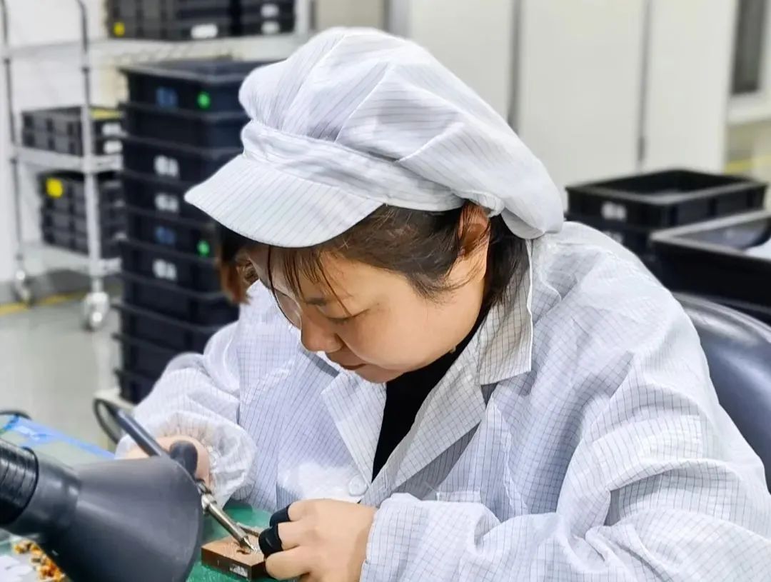 贴片环节则又是另一场惊心动魄的战斗。面对完全陌生的设备,雷师傅临危不乱、细心调试,调试出一系列定制化的工艺参数,成功完成芯片的精确对接。经测试,完全满足了高标准的贴片要求。