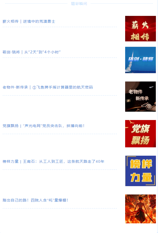 通过融媒大家谈、融媒策划会等形式,中心倾力推出精品栏目矩阵,包括工程聚焦、砺剑·骁将、老物件·新传承、漫画航天、薪火相传等9大品牌栏目,记者深入一线挖掘典型事迹、先进团队个人。未来,四院融媒体中心将持续深化媒体融合创新,将党委的声音发出来,将企业的形象展出来,将先进典型树起来,为建设一流运载技术研究院注入强劲文化动能!