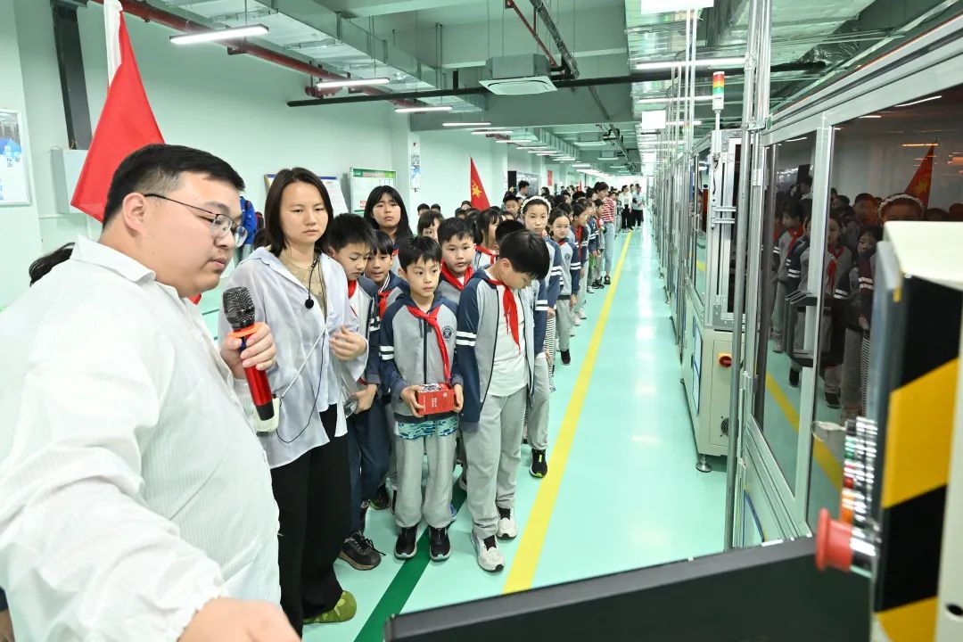现场科普结束后,学生们依次进入十院航天电器麻花针智能制造车间参观。