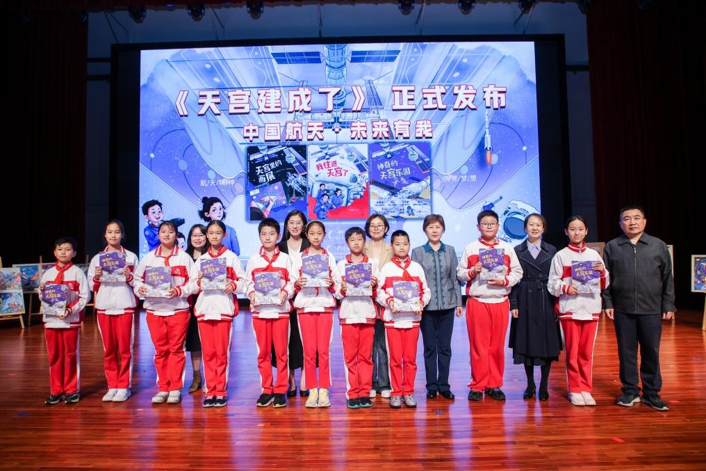 4月18日,在第十个“中国航天日”来临之际,以“海上生明月,九天揽星河”为背景,“翻开绘本看天宫,点燃少年航天梦”——《天宫建成了》新书发布暨航天科普进校园活动在北京育英学校圆满举行。480余名师生、航天领域嘉宾与教育行业代表齐聚一堂,共赴这场充满趣味与知识的航天盛宴。