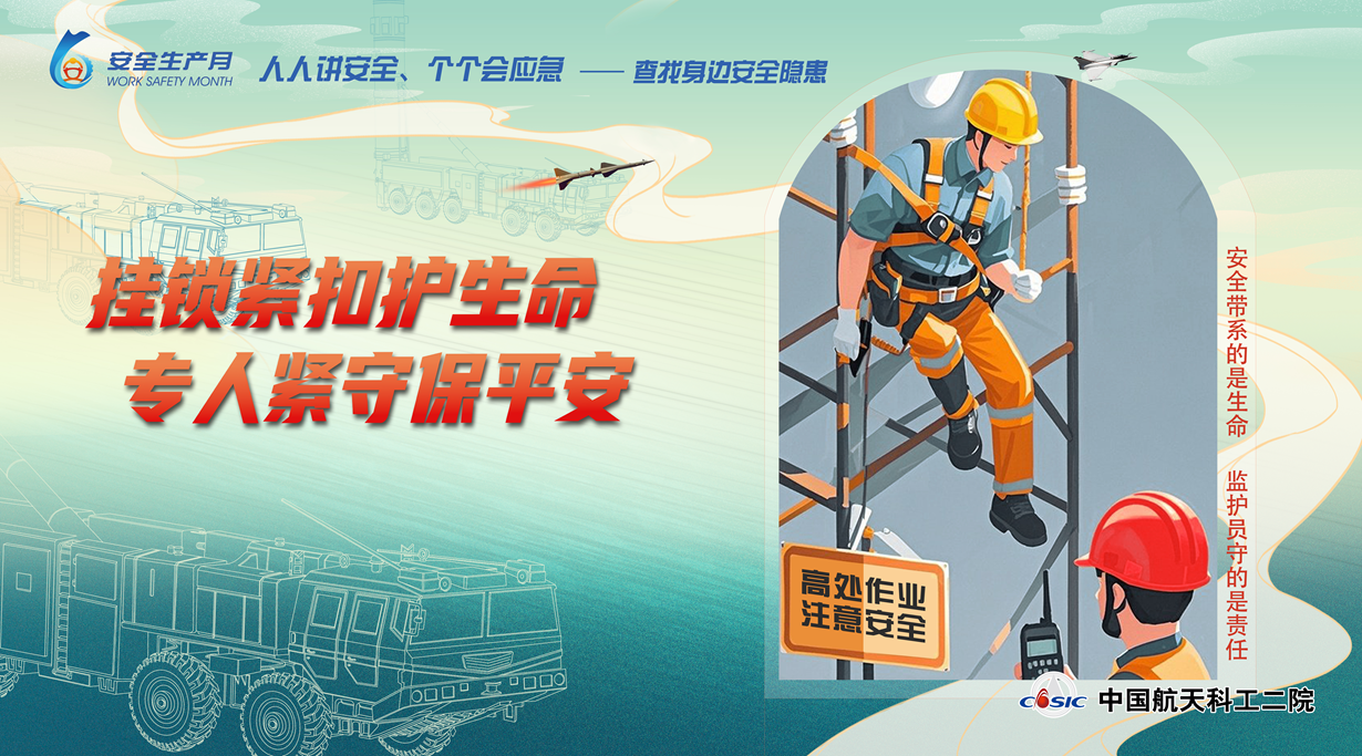 为坚持以习近平新时代中国特色社会主义思想为指导,认真贯彻落实党的二十大和二十届二中、三中全会精神以及习近平总书记关于安全生产的重要论述和重要指示批示精神,坚持人民至上、生命至上,统筹发展和安全、保供与安全,以“人人讲安全个个会应急——查找身边安全隐患”为主题,以防范化解重大安全风险为主线,深入推进安全生产治本攻坚三年行动,加强风险隐患排查治理,严格责任制落实,扎实做好重点领域“一件事”全链条治理,不断提升安全生产治理能力和水平,按照国家、上级及院有关文件要求,航天二院对“安全生产月”活动进行了专题策划。