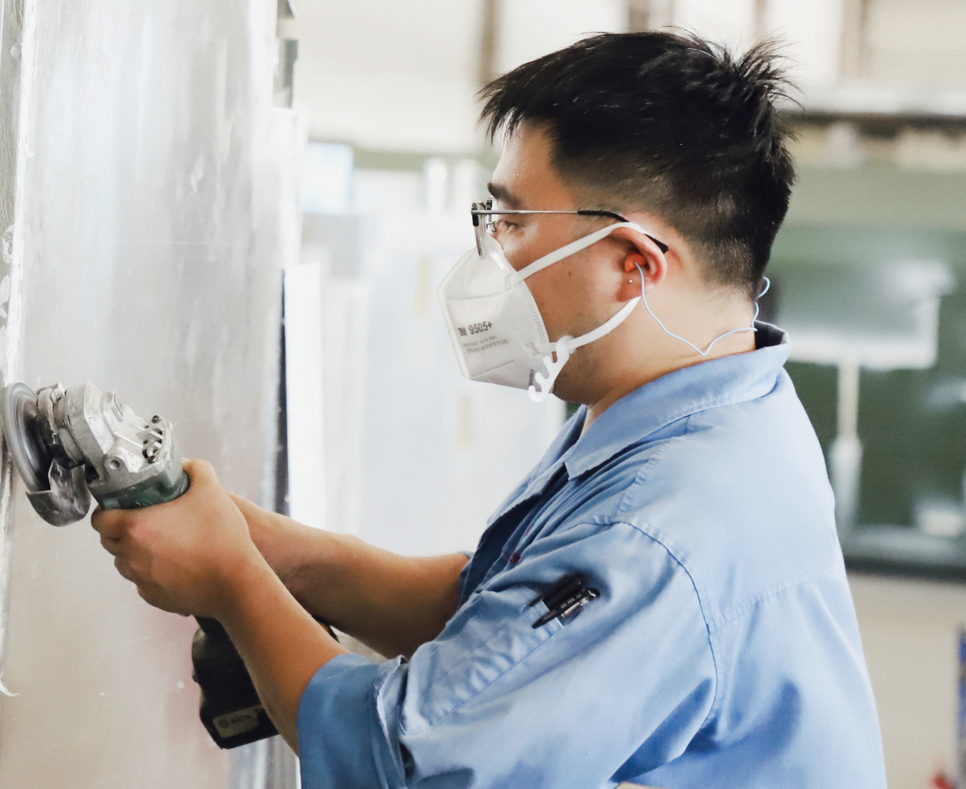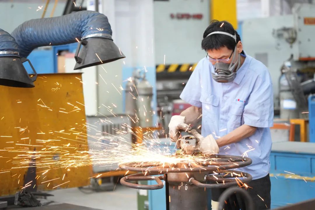 航天天马材料成型部车间内,张师傅正在对一重点产品的电缆盘进行焊接前打磨清理焊面工作。车间内火花飞溅,机器轰鸣,每个人都在为这一重点项目奋力拼搏,朝着任务交付的目标坚定迈进。
