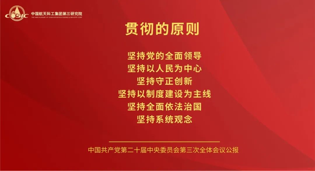 党的二十届三中全会,是在以中国式现代化全面推进强国建设、民族复兴伟业的关键时期召开的一次十分重要的会议。航天三院党委将学习好宣传好贯彻好党的二十届三中全会精神作为当前和今后一个时期的一项重大政治任务,高度重视,迅速行动,引导三院全体党员干部职工把思想和行动统一到全会精神上来,把智慧和力量凝聚到落实全会精神和部署上来,聚焦主责主业,履行强军首责,持续推动飞航事业高质量发展。