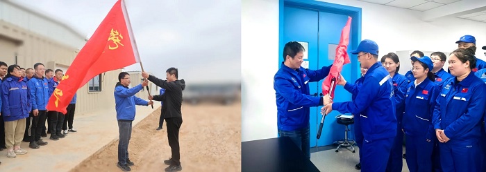 授旗仪式上,所领导为党员突击队代表、青年突击队代表授旗。突击队队长介绍队名、人员组成和任务目标。