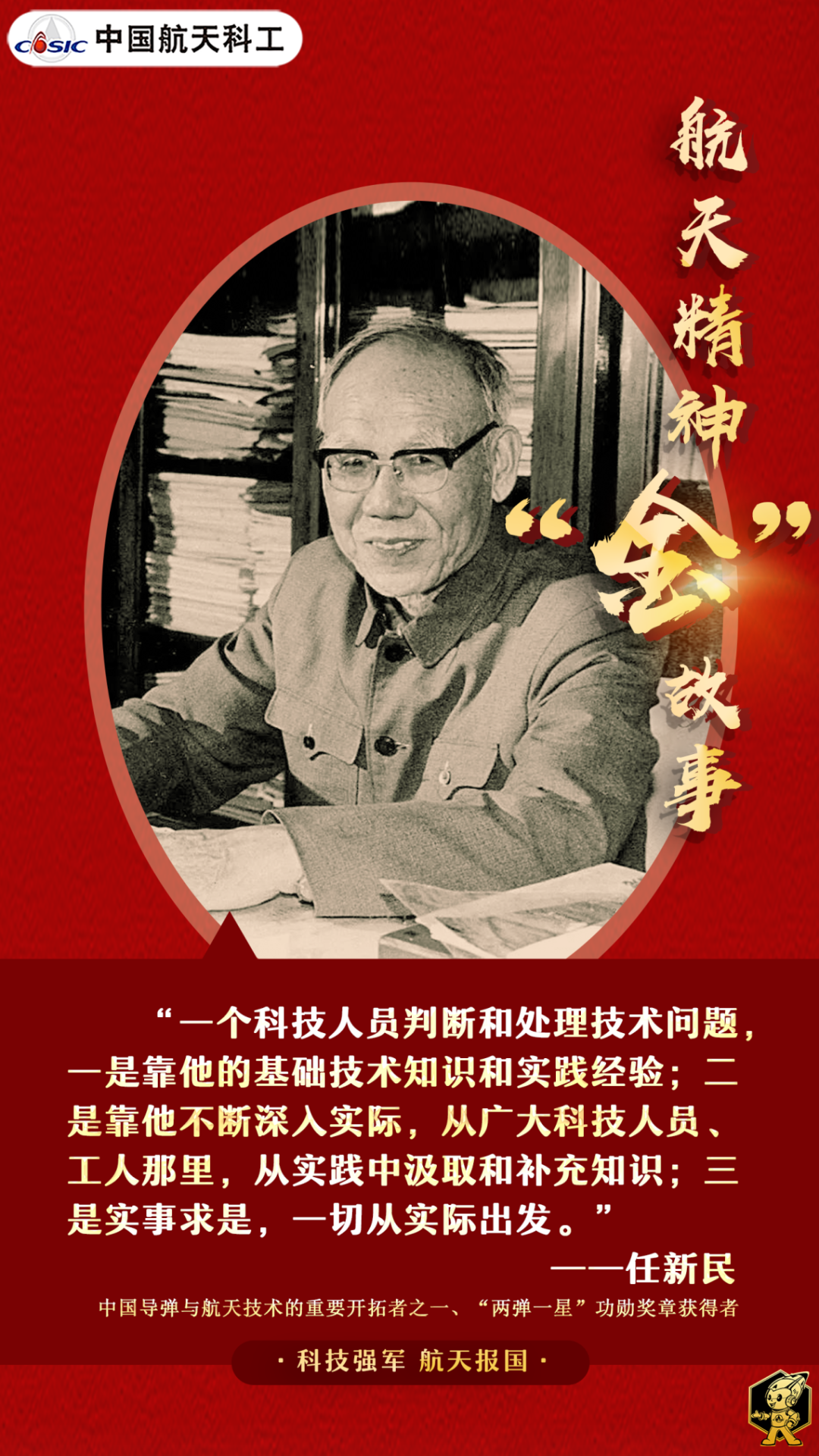 无论个人发展还是事业腾飞,想要实现从小到大、由弱到强的蜕变,求真务实是航天人必须坚持的精神品质,坚持实事求是,一切从实际出发。这样,你才能像任新民等老一辈航天科学家一样,让你的坚持成为事业发展的正确选择,让你的定力成为事业发展的强大推力。