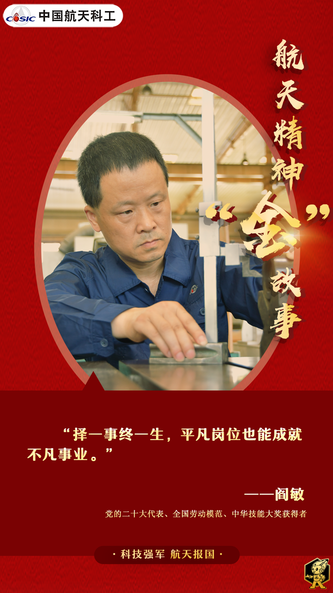 阎敏,是航天三江江北公司车工特级技师,党的二十大代表,曾荣获“全国五一劳动奖章”。36年间,经由他手加工的“国之重器”关键件,合格率一直保持在100%。屡屡创下产品“零失误”的纪录,阎敏,就是“人刀合一”的代名词。