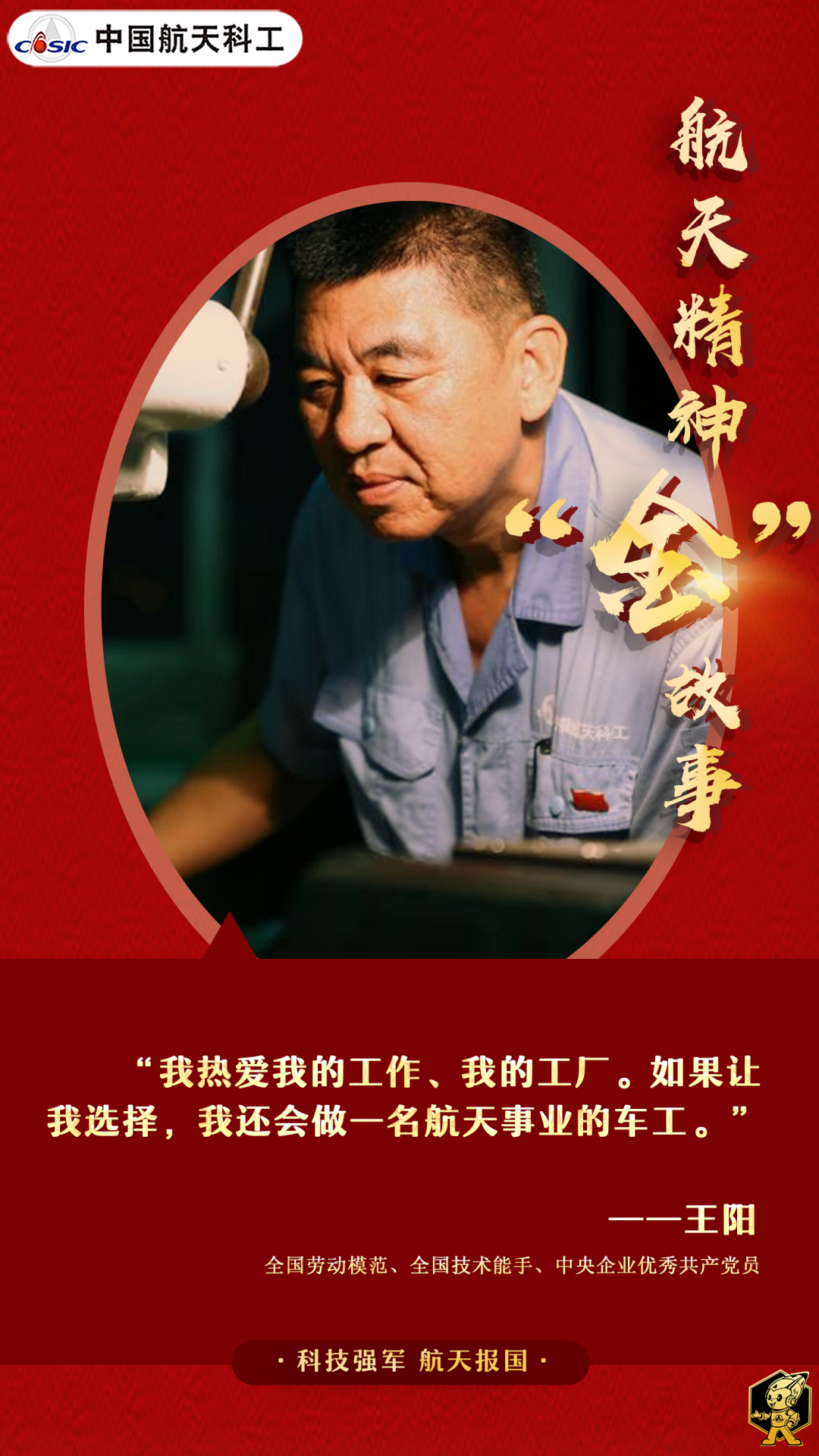 对事业热爱笃定,对专业执着坚持,三尺车台,王阳一站就是40年。他用“零失误”的操作创造了连续28年无废品纪录,他用100%的产品合格率保障了载人航天等重大工程任务的成功。因为这股倔劲韧劲,王阳把“铁疙瘩”车成了航天精品,也把自己“车”成了国之栋梁。