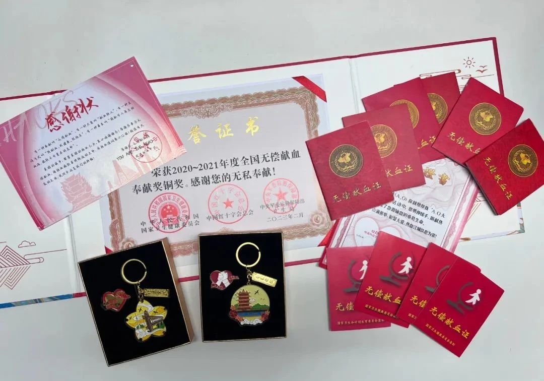 “2020-2021年度全国无偿献血奉献铜奖”“最佳履行社会公益责任奖”……一本本献血证、一张张荣誉证书、一封封感谢信,见证着分公司20年如一日,践行救死扶伤、助人为乐的传统美德,回报社会、奉献社会的赤诚之心。(海报/高婕 文/财宣)