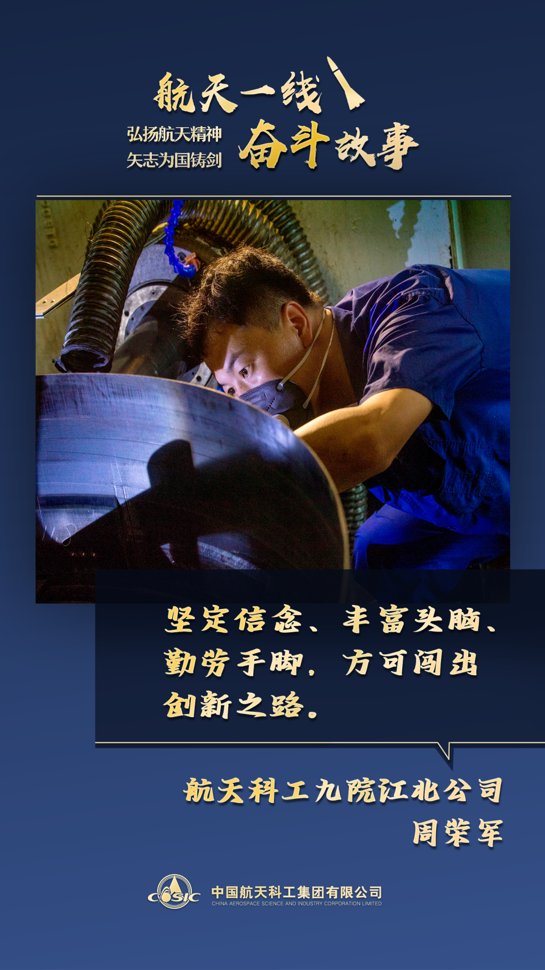 当年,在加工某型号的首台产品时,周荣军曾连续奋战了20余天。最后一天凌晨三点,周荣军顺利把产品交付检验,骑车回家的路上他也沉浸在喜悦之中。“太开心了,到小区门口都没注意有栏杆,毫不犹豫就骑过去,结果把栏杆给撞坏了。”