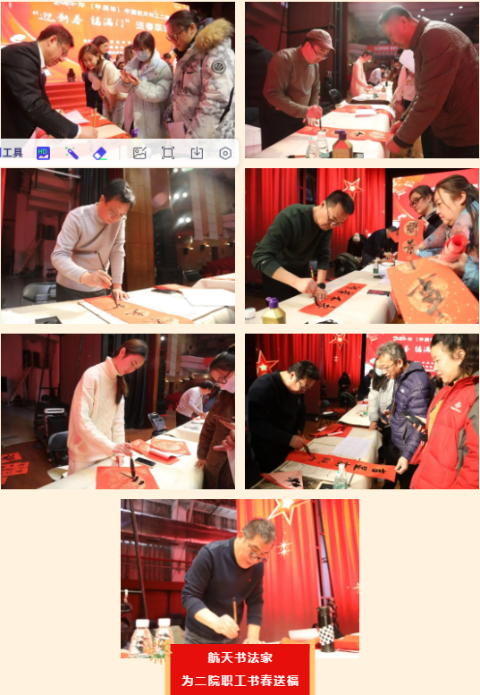 来自中国航天书法家协会、中国公安书法家协会、中国金融书法家协会的书法家以及航天科技五院、九院和航天科工二院、三院的七位航天书法家为二院职工送来了新春的祝福。