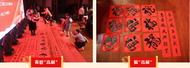 活动现场充满着喜庆祥和的节日气氛,书法家们挥毫泼墨。