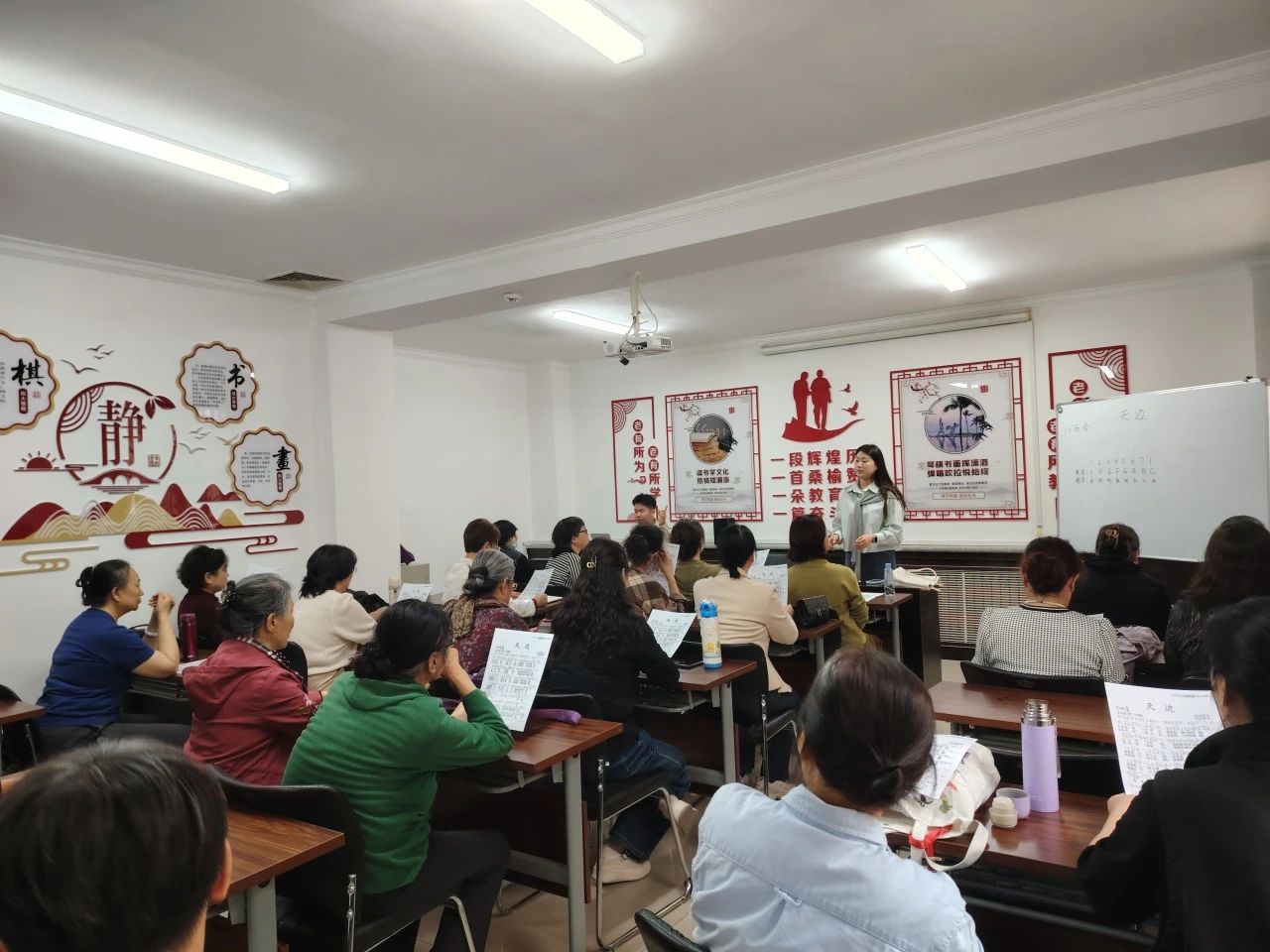 分校还结合老同志们的兴趣特点与社会化趋势,新开设了书法鉴赏、诗歌朗诵、模特展示等5门全新课程。其中,声乐班与舞蹈班人气爆棚。声乐班里,老同志们跟随老师练习发声,悠扬歌声传递对生活的热爱;舞蹈课堂上,大家踩着节奏翩翩起舞,身姿轻盈灵动。这些课程不仅丰富了课余生活,更让老同志们在艺术学习中收获快乐、结交挚友,成为老年教育的亮眼名片。