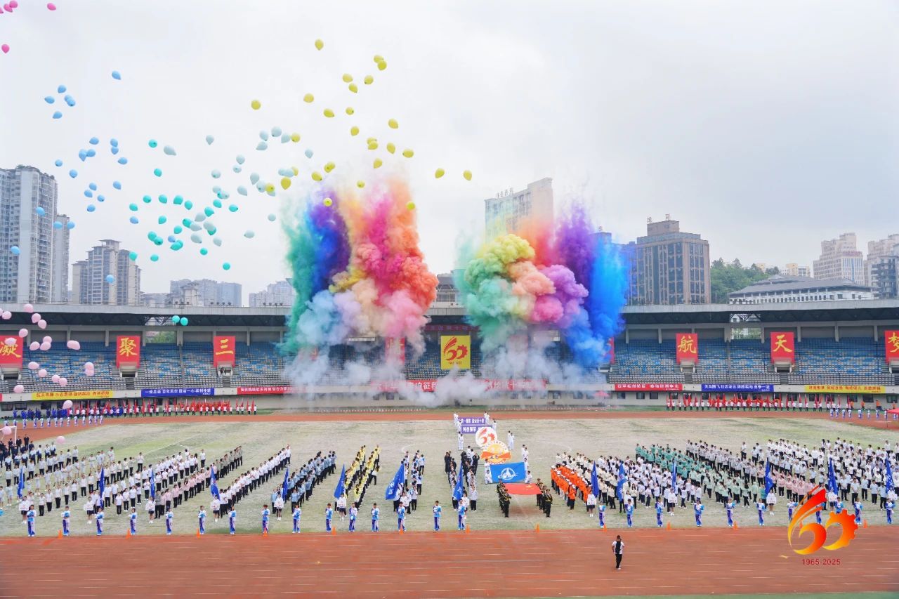 赛前,运动员代表、裁判员代表分别宣誓。由800人组成的广播体操表演整齐划一、舒展有力。而由十院100名退休职工带来的太极八段锦表演则刚柔相济,集形与神于一体;两侧的舞龙更是静中有动,传统文化结合的节目赢得看台上阵阵喝彩。贵州航天工业学校带来的团体操表演《旗风航帆》气势恢宏,高燃的音乐更是将全场氛围引向高潮。