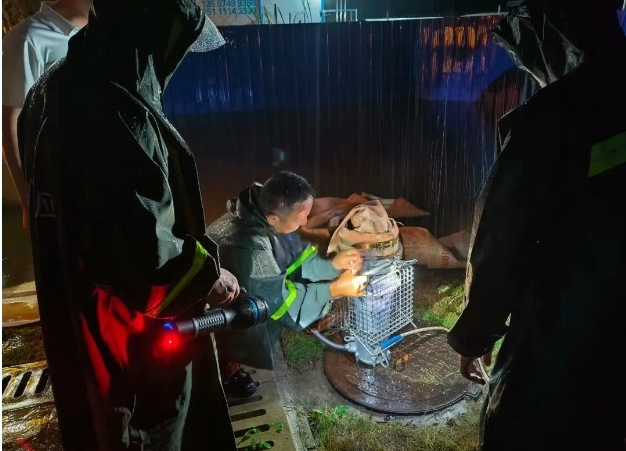 面对极端严峻复杂的强降雨形势,石门园区安全保障部深刻认识到本轮强降雨的严峻性,将“时时放心不下”的责任感转化为“事事心中有底”的行动力,紧盯水情变化,分析园区地势,精准研判风险,组织部门人员定时定点巡查堤岸汛情及园区雨污管网、特种设备区、配电房等重点部位情况,并及时报告汛情动态。