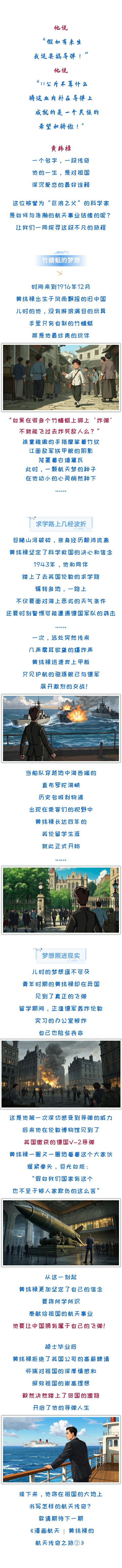 一代人有一代人的奋斗,一个时代有一个时代的使命。不朽的航天精神早已融入航天人的血脉中,穿越时空、传承至今......每一代航天人都以自己的方式,书写关于探索、勇气、梦想与坚持的故事。航天科工四院官微推出“漫画航天”系列推文,通过漫画的形式,讲述他们关于航天的故事。本期,让我们走进《漫画航天 | 黄纬禄的航天传奇之旅①》。